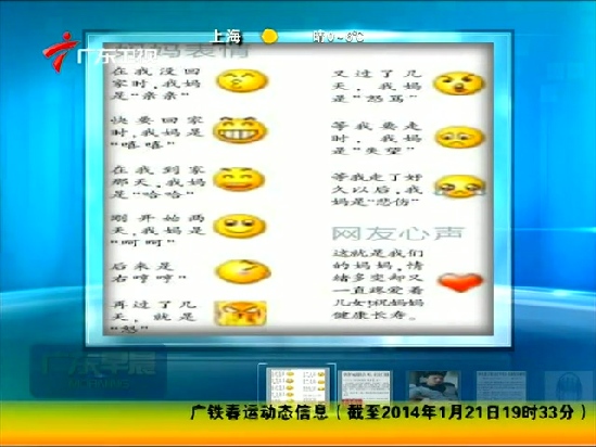 “在我没回家时,我妈是"亲亲";快要回家时,我妈是"嘻嘻"……”春节临近,在远方的孩子能回家过年团聚,成为了千万母亲的心愿。昨日,网上用一张展示母亲与儿对话回家的9个QQ表情图,引发了网友们的疯转和狂赞!不少网友看得眼眶湿润。专家表示,简单的东西也能深入人心,这幅图片最重要的是传达了母爱和温情。