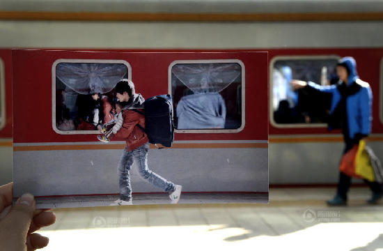 春运首日,同一个火车站,相同的地点。从2010年到2014年,从开始到现在,场景没变,只不过时光变幻,我们又成了人潮人海中的一员。也许,你我每年都擦肩而过,回家的路上,同行的我们并不孤单。2012年1月8日,昆明火车站站台,一名男子抱起孩子匆匆赶车。 vs 2014年1月15日,身后的旅客似乎在呼唤照片中的旅客。春城晚报记者 龙宇丹