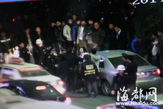 面对老婆的行为,王某基本沉默,站在车外拿手机录像,仅偶尔插话。由于已经僵持了一个多小时,当晚8时许,泉秀派出所余副所长赶到现场。但他苦劝40分钟,彭某仍坚持要把车开走。