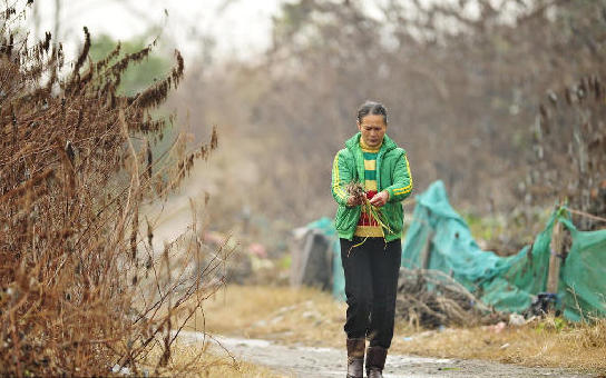 54岁的刘建英是朱家谷的爱人。作为“留守军团”,她每天得坐在小板凳上奋战10个小时,将约9000个塑料瓶刮掉包装纸,并按颜色分类。“这样价钱卖得起一些”,老朱告诉记者。分类过后,还得清洗干净,再装包。