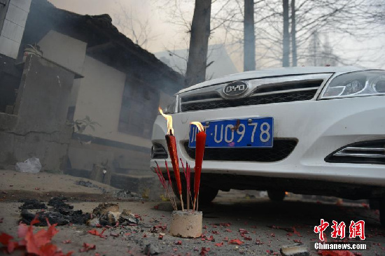2014年1月28日,临近农历除夕,四川雅安芦山飞仙关镇一些民众举行了传统的“祭车”仪式。