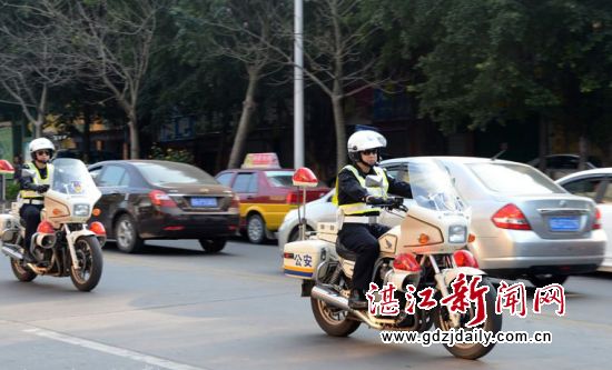 湛江新闻网讯:为了加强节日市区交通秩序有效管控,巩固近日交通整治成果,给广大市民创造一个平安、畅顺、和谐的交通环境,节日期间,交警支队吴小明支队长亲自驾驶大功率警用摩托车带队不定时深入市区重点路段巡逻,沿途通过喊话劝导群众驾驶摩托车、电动车佩戴头盔、按道行驶,遵守交通法规。同时,查看各岗点警力到岗和管事情况,实地察看交通设施,切实掌控当日路面警情,现场办公找出薄弱环节。