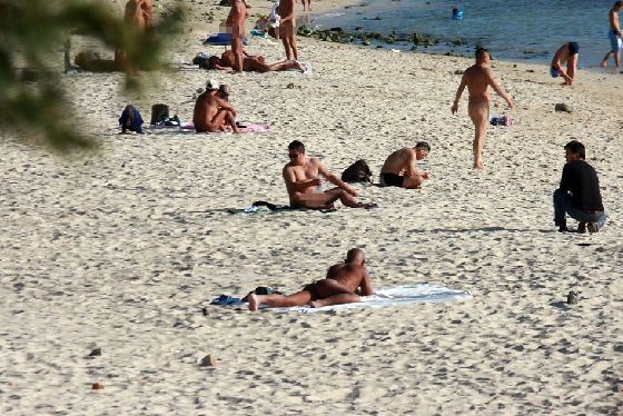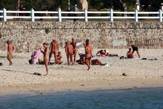 2014年2月1日,大年初二下午17时许,海南三亚著名天然浴场大东海挤满游客,男女游客与天体浴者一起在海滩上度假。 海天/摄