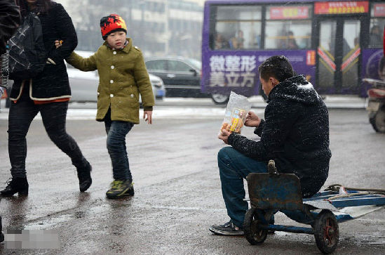 华商论坛网友“严建设”拍摄了一组西安火车站前一农民工顶风冒雪等生意的照片。