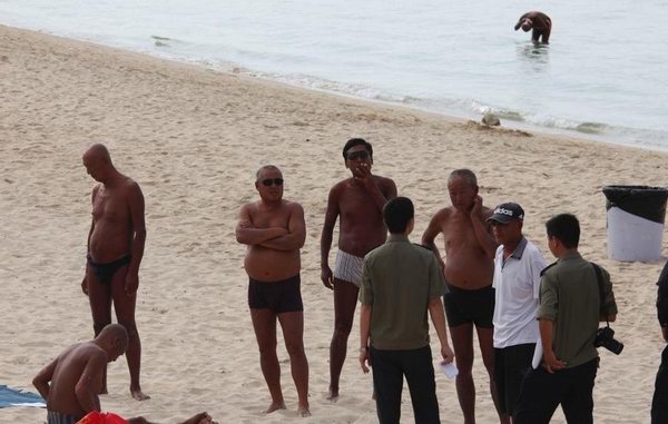 三亚城管整治公共海滩裸泳裸晒 游人不听劝说