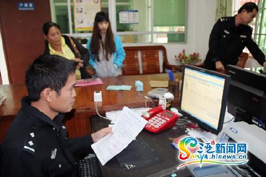 民警现场为黄丽谌办理户籍信息更正。(三亚新闻网记者邓松摄)