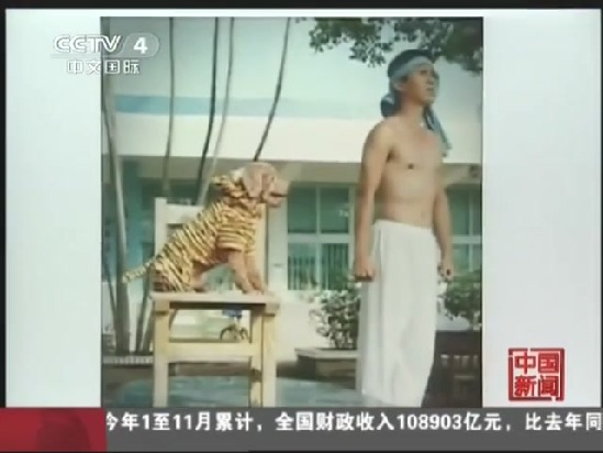 有人好奇地问老汉:“这不是染出来的狗吧?”老汉哈哈地笑了,说确实是老虎。更多围观的游人则对老汉表示敬意,夸他“威武”、“霸气”。