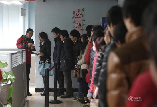 招聘中心里等待面试。Duran/摄