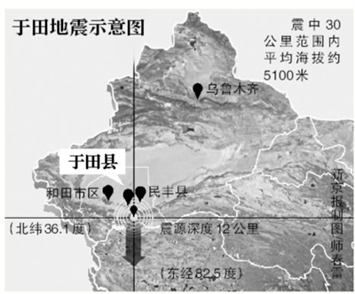 新京报讯 中国地震台网消息,12日17时19分,新疆维吾尔自治区和田地区于田县发生7.3级地震,南疆地区的和田、于田、墨玉等县市震感强烈,暂无人员伤亡。