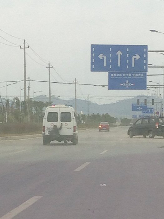 帖子转发后,很多网民都想知道事情的来龙去脉。记者仔细观看照片,发现这辆救护车行走的路段是来宾市体育馆附近的经七路,中年男子所坐的位置并不是救护车的后排保险杠,而是后门踏板,右手则紧紧抓住门把。