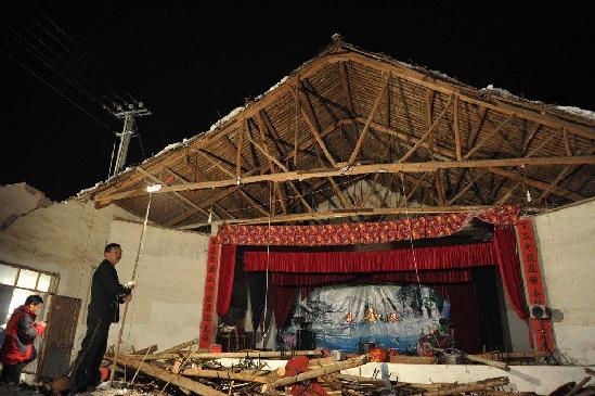 中新网金华2月13日电 13日17时30分许,磐安县万苍乡雅庄村一村民在老旧会堂办喜事,因山区持续降雪,积雪过重,发生屋顶坍塌,截至晚22时,7名重伤者因抢救无效死亡,98人受伤,其中重伤10余人,伤者正在磐安县人民医院、县中医院救治。