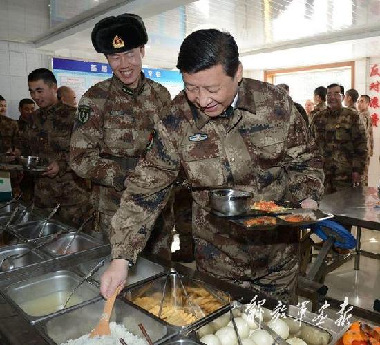 1月26日,习近平来到内蒙古军区边防某团一连食堂,同战士们一起用餐。查看高清组图