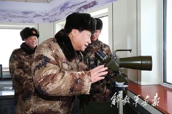 1月26日,习近平主席在内蒙古军区边防某团三角山哨所察看边境情况。查看高清组图
