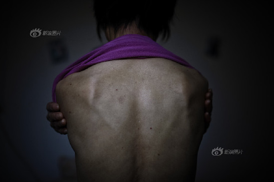 熊德君的妻子胡麦珍,57岁,皮肤癌患者。反复发作的病痛让她无法正常吃饭和劳作,她说自己只剩下“皮包着骨头”。