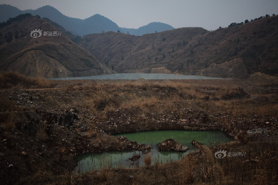 雄黄矿原厂区废弃的水池里“绿色”的废水。