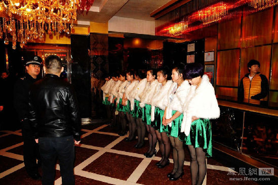 2月17日,山东青岛深化整治“黄赌毒”违法犯罪“风暴1号”行动全面展开,公安民警深入辖区对娱乐场所、浴室、旅馆等公共场所进行了集中彻查,对涉及“黄赌毒”违法犯罪行为进行严厉打击。图为民警在检查娱乐场所。