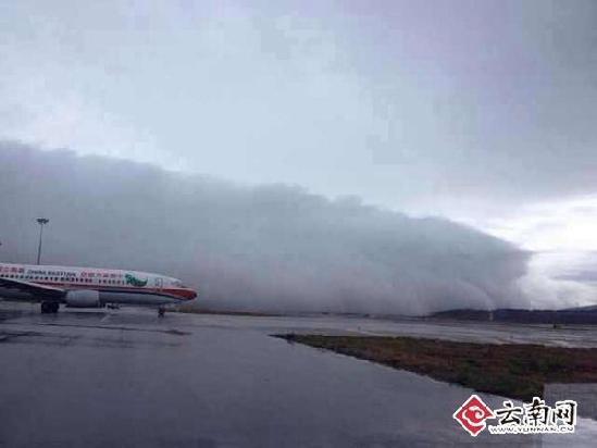 2月18日下午网友发微博在昆明长水机场跑道上看见移像幕墙一样的奇异云图。据了解,这一情况持续了约半小时,未对机场运营造成影响。对此,气象台专家解释,有南风风面正遇上强冷空气,冷暖气流在小范围内交汇所以形成了浓雾接地,就像墙一样。