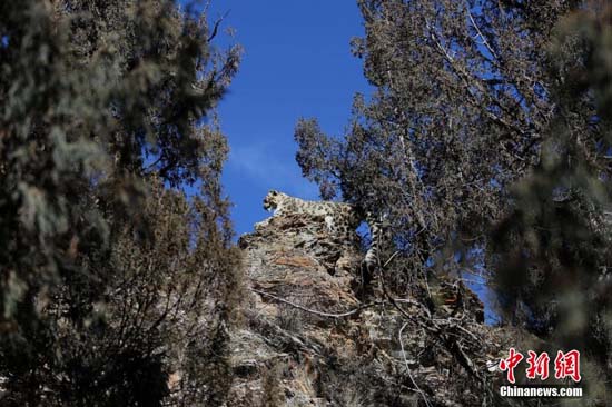 2月19日,记者从青海省黄南州河南县环保林业局获悉,雪豹跟踪拍摄小组工作人员经过两个月的努力,于2013年12月20日和22日,在三江源腹地拍到雪豹行踪。雪豹目前是中国国家濒危物种,数量少于大熊猫,被人们称为“高海拔生态系统健康与否的气压计”。中新社发 才项南加 摄