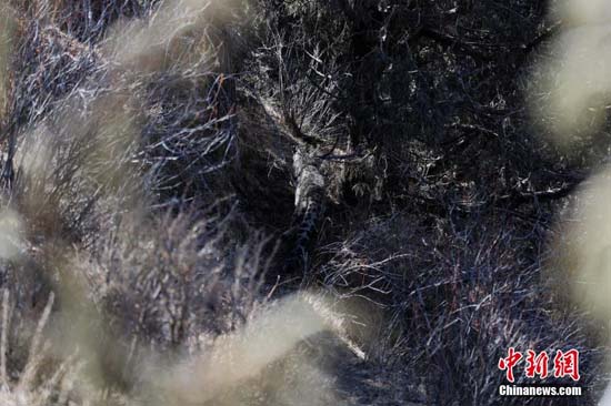 雪豹跟踪拍摄小组拍到雪豹行踪。中新社发 才项南加 摄