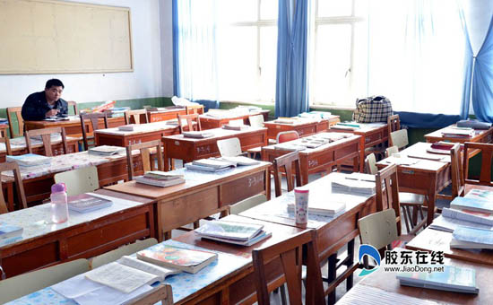 偌大的教室只有一位学生在学习。(魏琪/摄)