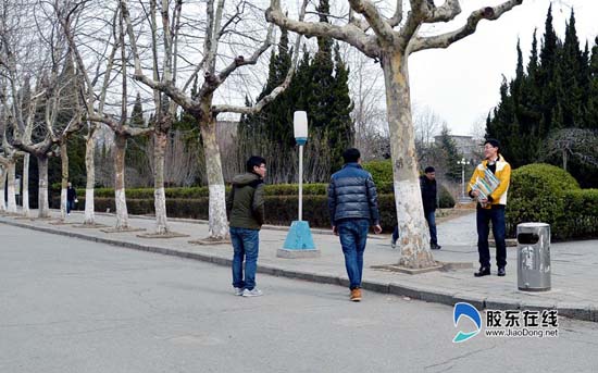 同学之间见面打招呼:你占座了吗?(魏琪/摄)