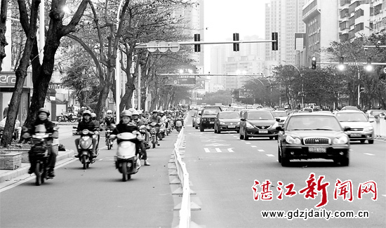 21日下午,赤坎海北路,车辆正按要求各行其道。潘章勇 摄