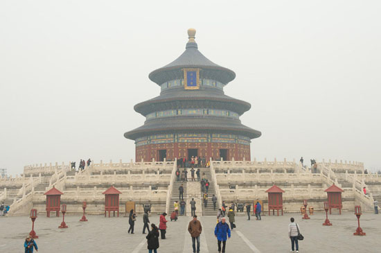 2月22日,游客在北京天坛公园祈年殿附近游览。