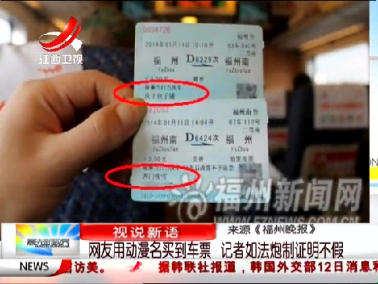 2014年1月10日,一名网友用日本动漫人物名购买了两张动车票,并顺利乘车。随后,媒体记者也使用“庆丰包子铺”和“西门吹雪”的化名够得车票并顺利上车。