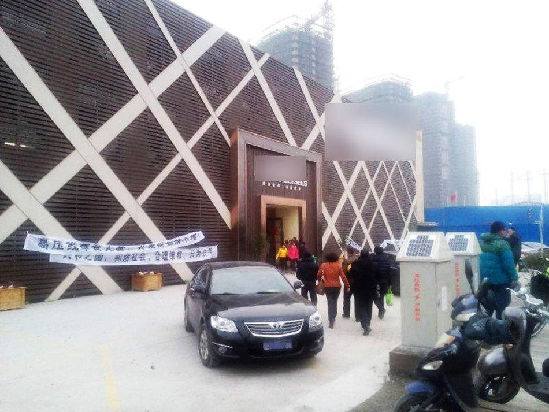 楼盘老业主聚集在售楼处,在进行了一系列维权行动。