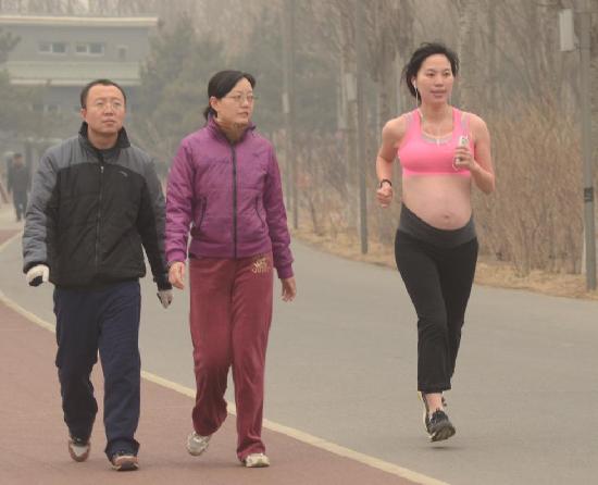 2月23日,北京,每年的奥森长跑活动如期举行。孕妇徐蕴云是活动中的一个焦点。她说,坚持锻炼不仅可以保证身体健康,还有利于分娩。陶冉/CFP
