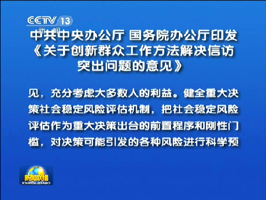 新华网北京2月25日电近日,中共中央办公厅、国务院办公厅印发了《关于创新群众工作方法解决信访突出问题的意见》,并发出通知,要求各地区各部门结合实际认真贯彻执行。