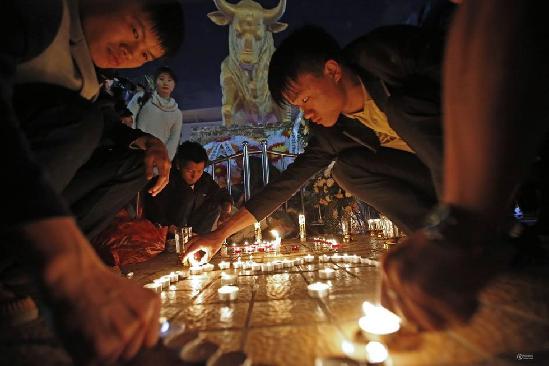 2014年3月2日,昆明发生暴力恐怖事件次日,民众自发到昆明火车站广场献花哀悼。