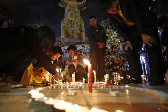 2014年3月2日,昆明发生暴力恐怖事件次日,民众自发到昆明火车站广场献花哀悼。