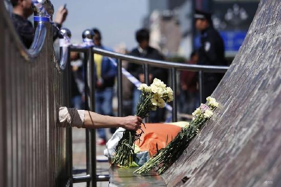 2014年3月2日,昆明发生暴力恐怖事件次日,民众自发到昆明火车站广场献花哀悼。