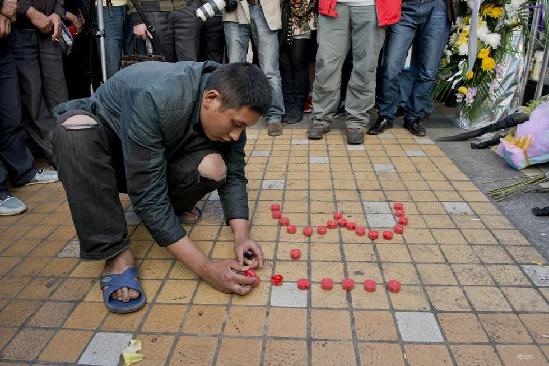 2014年3月2日,昆明发生暴力恐怖事件次日,民众自发到昆明火车站广场献花哀悼。