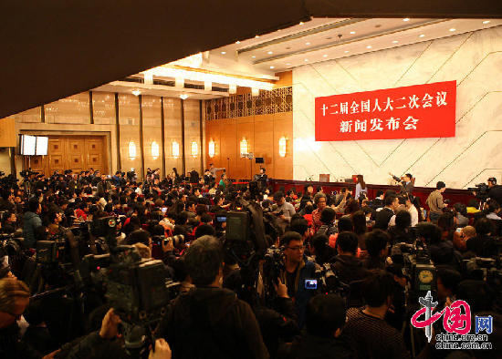 3月4日,记者们陆续达到会场。中国网记者 董宁 摄