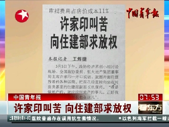 在许家印看来,要盖110多个章,要用多少时间,提供多少资料,浪费多少人力物力财力?国家今年简政放权,行政体制改革力度比较大,建议住建部对此进行规范和统一。