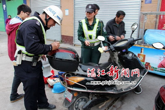 目前,交警赤坎大队民警采取交流学习、实践砺兵等形式,进一步提升超标电动车号牌真伪辨别能力,全面提高查处打击力度。因些,奉劝一些抱有侥幸心理的效仿者,不可以身拭法,否则,后悔莫及。