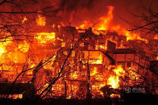 资料图:独克宗古城火灾现场(1月11日摄,手机拍摄)。新华社发