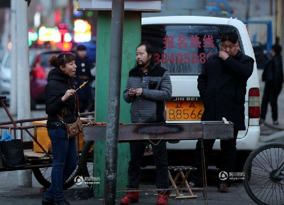2014年3月19日,辽宁省沈阳市,在沈阳某高校门前一位路边烤肉串的男子生意不断,议论不断,要求合影者不断。买烤串者都会忍不住的笑出声来,这也太像金正恩了。