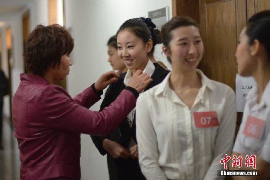 3月23日,山西太原,海航太原站乘务员招聘在中北大学启幕,吸引了千余名怀揣蓝天梦想的“90后”美女前来竞聘。中新社发 韦亮 摄
