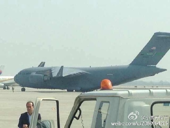 米歇尔的车队搭载C-17运输机提前抵达西安。