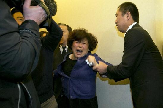 2014年3月24日晚,北京,酒店内马航航班家属悲痛欲绝。