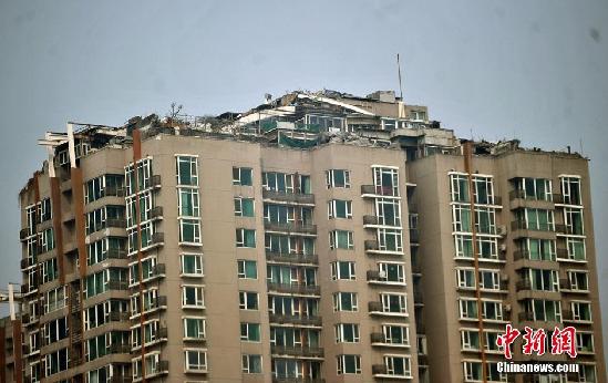 由于无法进入拆违现场,小区物业只能在楼下摆放锥桶,提示过往行人躲避以防发生危险。