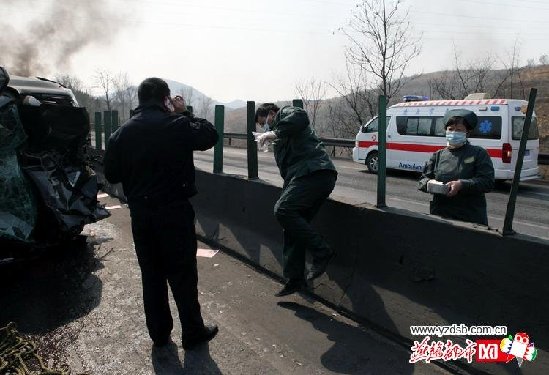 鹿泉市120急救中心赶到现场。听现场交警说前面还有一起同样严重的车祸在处理中。