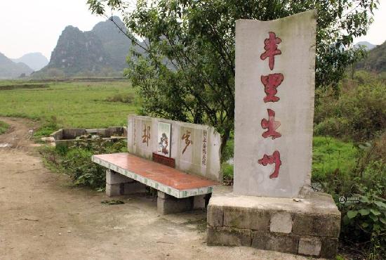 在这座墓右侧路边,还立有一块约两米高的石碑,上书“半里出州”四个大字,旁边还有一张装饰有字画的石凳。