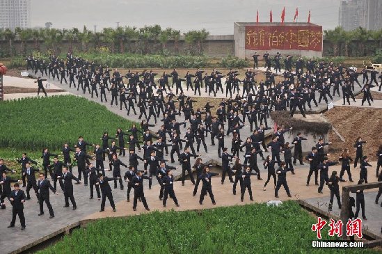 3月27日,重庆某集团员工正在工厂楼顶的田野里做广播体操。为增强员工身体素质,提高工作效率,该集团要求员工每天都要做好广播体操,使得员工身心放松。随着集团楼顶“开心农场”的完善,员工们平日在室内做的广播体操搬到工厂楼顶的田野里,让运动融入田野,让呼吸植根于绿色。企业打造绿色生态的办公环境,营造轻松快乐的工作氛围,让企业在践行中国梦的实际行动中践行生态文明和现代企业文明。陈超 摄