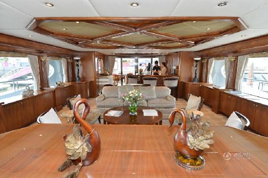 其中本次展会中最大、最豪华的罗恩格林号游艇,吸引不少游客和市民前来参观。据了解,这艘罗恩格林号超级游艇长49.3米,宽8米,共四层,最大续航3200海里,最高时速20节。