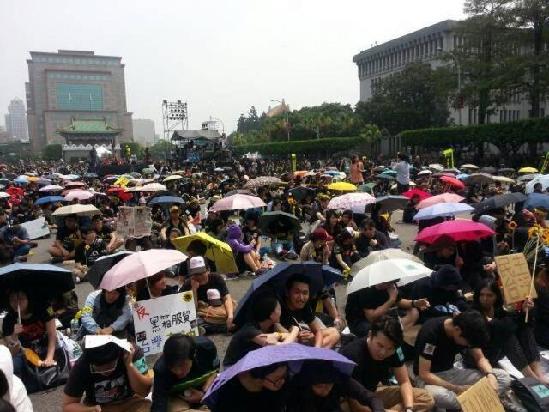 台湾“反服贸协议”学生和团体发起的民众,30日着黑衣涌入凯道,游行集会,表达诉求。根据警方估算,人数最多时,一度约11.6万余人。