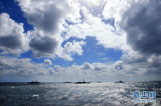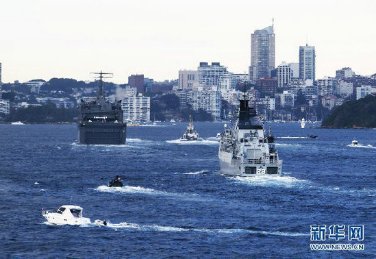 资料图:多国海军军舰编队驶离杰维斯湾向悉尼港航渡。
